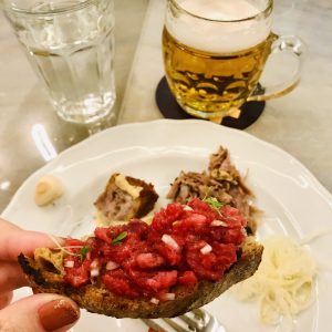 お肉料理が多いチェコ。お肉の専門店ではタルタルや煮込み料理などを少しづついただきました。